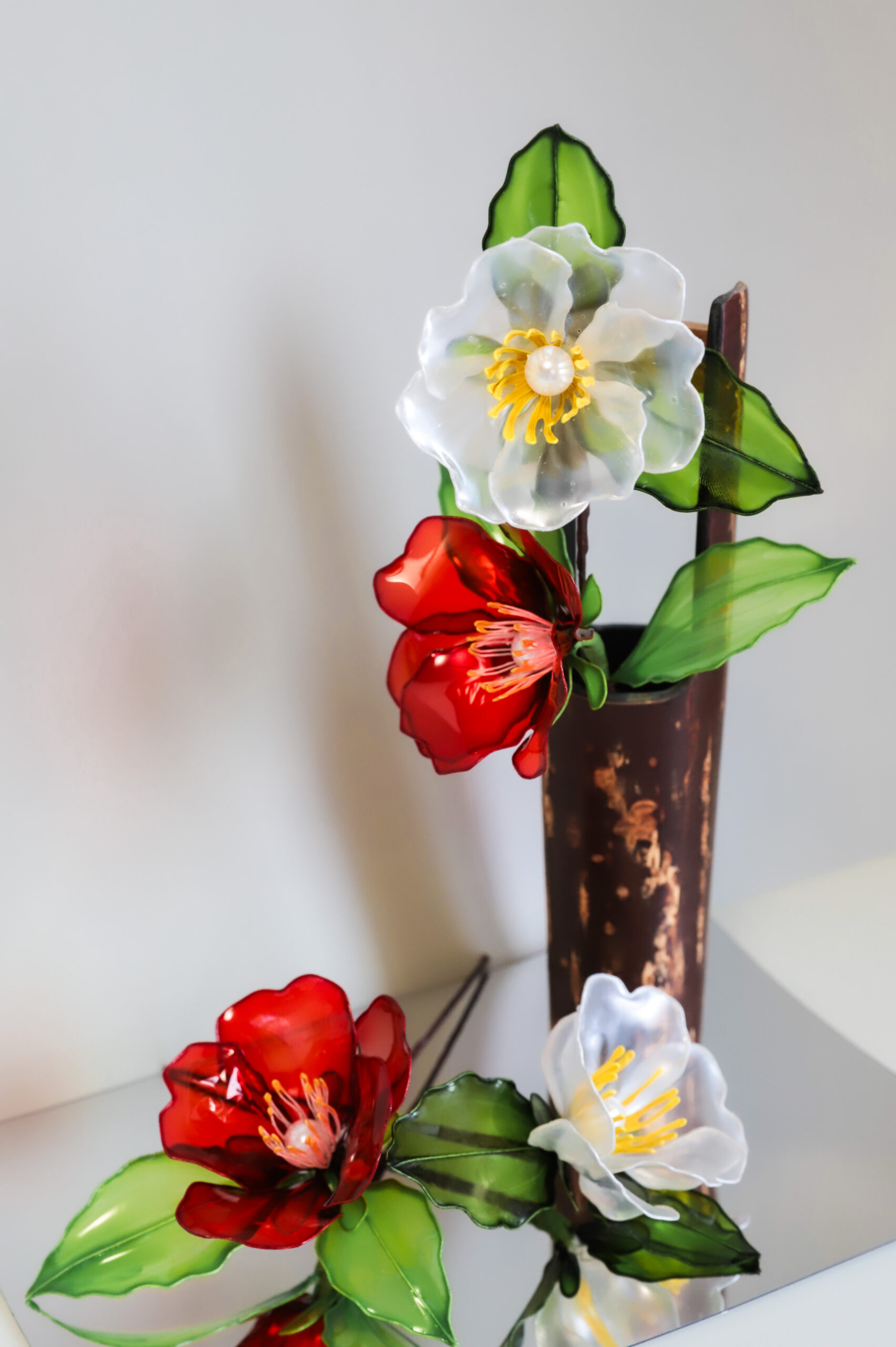 透明感あふれる椿を一輪挿しに。簪にも仕立てられるディップアートワークショップ