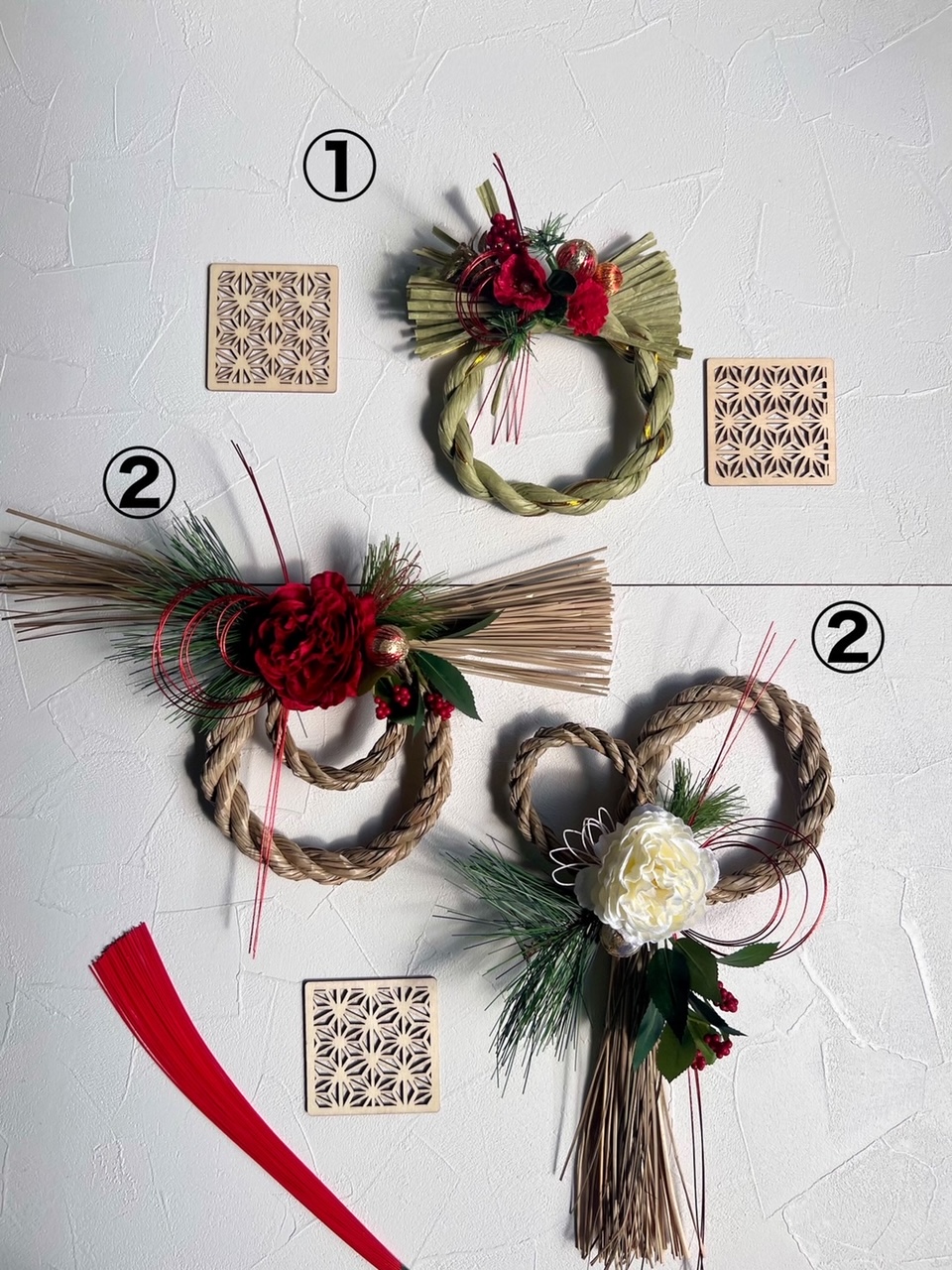 ベルベット素材のアーティフィシャルフラワーを使用した、自分だけの「しめ縄」作り