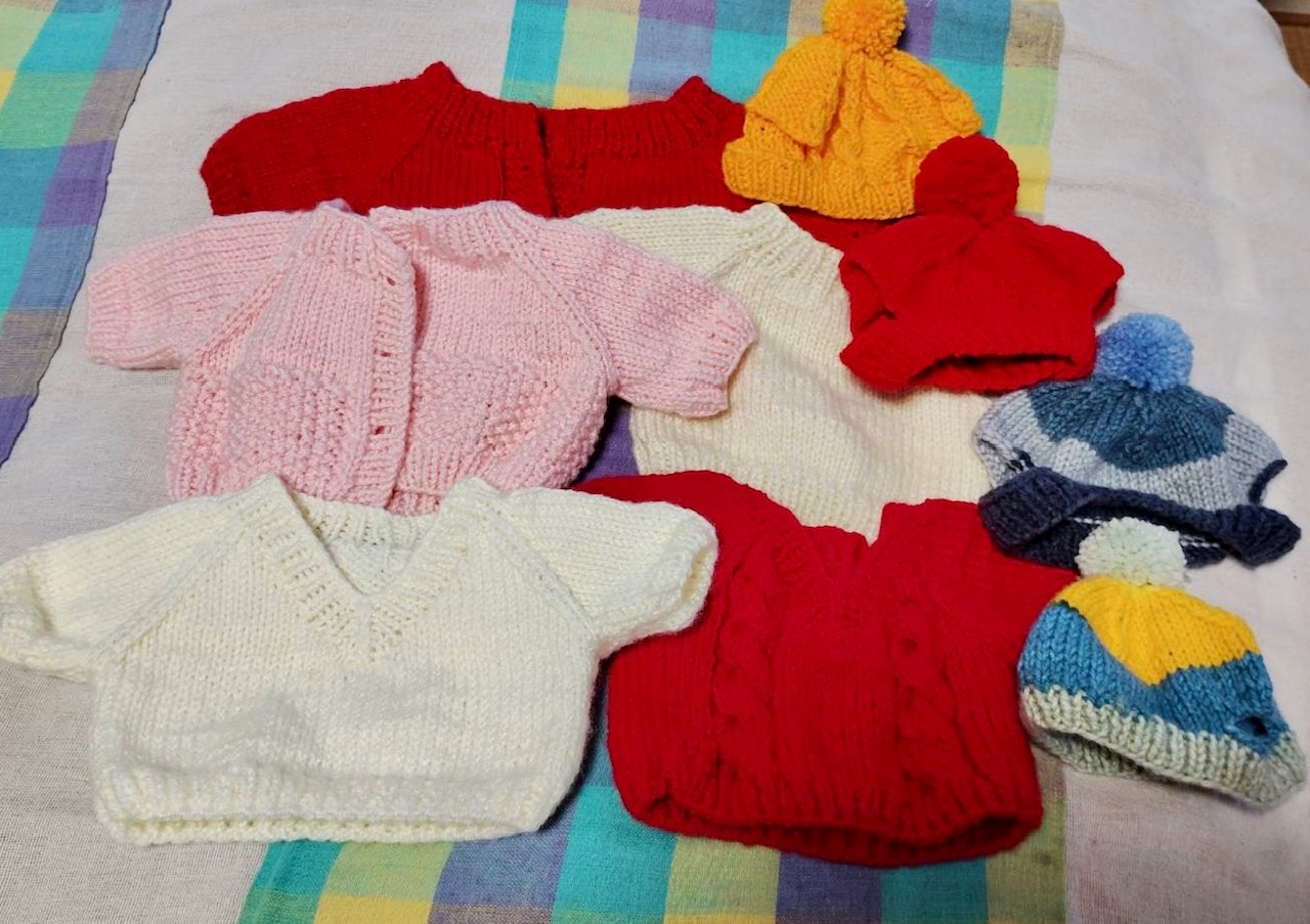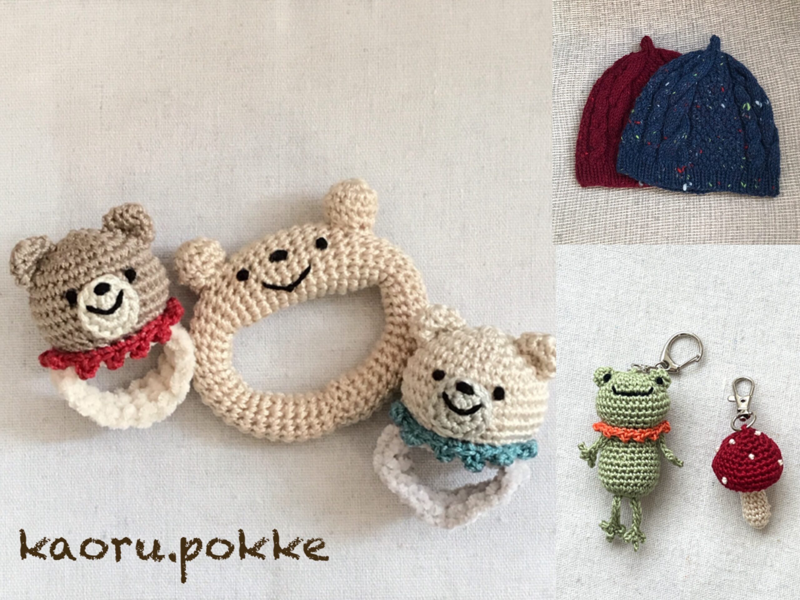手編みのベビートイ、ベビー帽子、あみぐるみ、手編み小物
