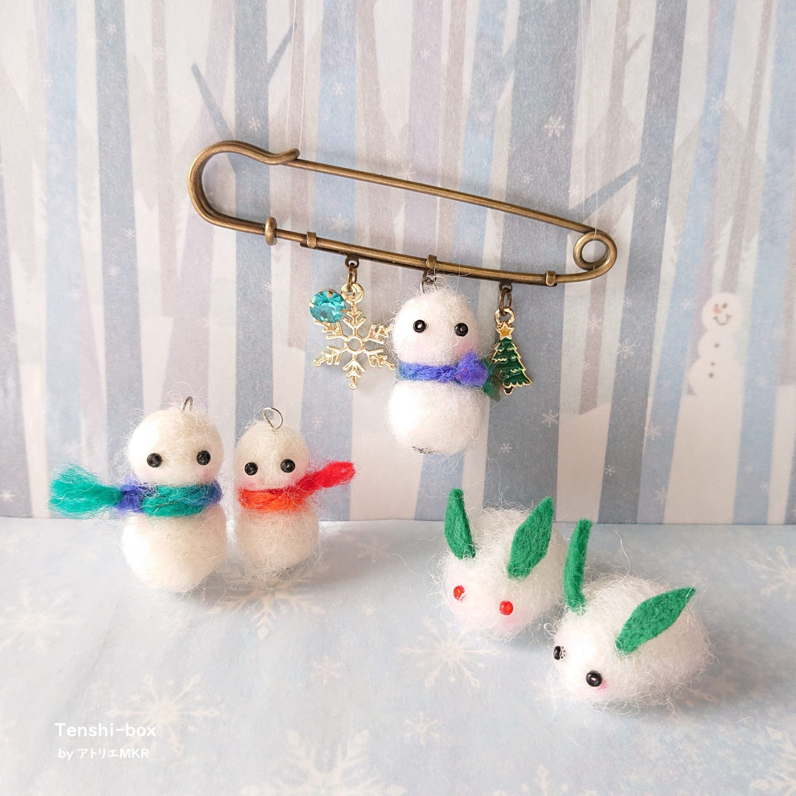 ぬくもりのある優しい手ざわりの雪だるまやキュートな雪うさぎの冬のアクセサリー作り