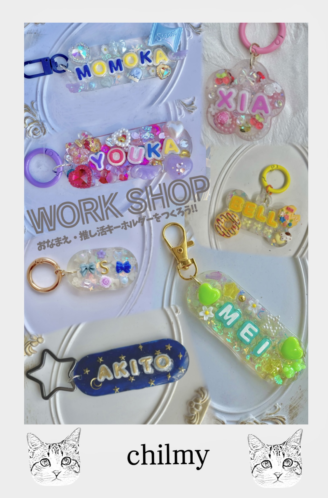 好きなカラーの文字とのせ放題のパーツで世界にひとつだけのオリジナルキーホルダー作り