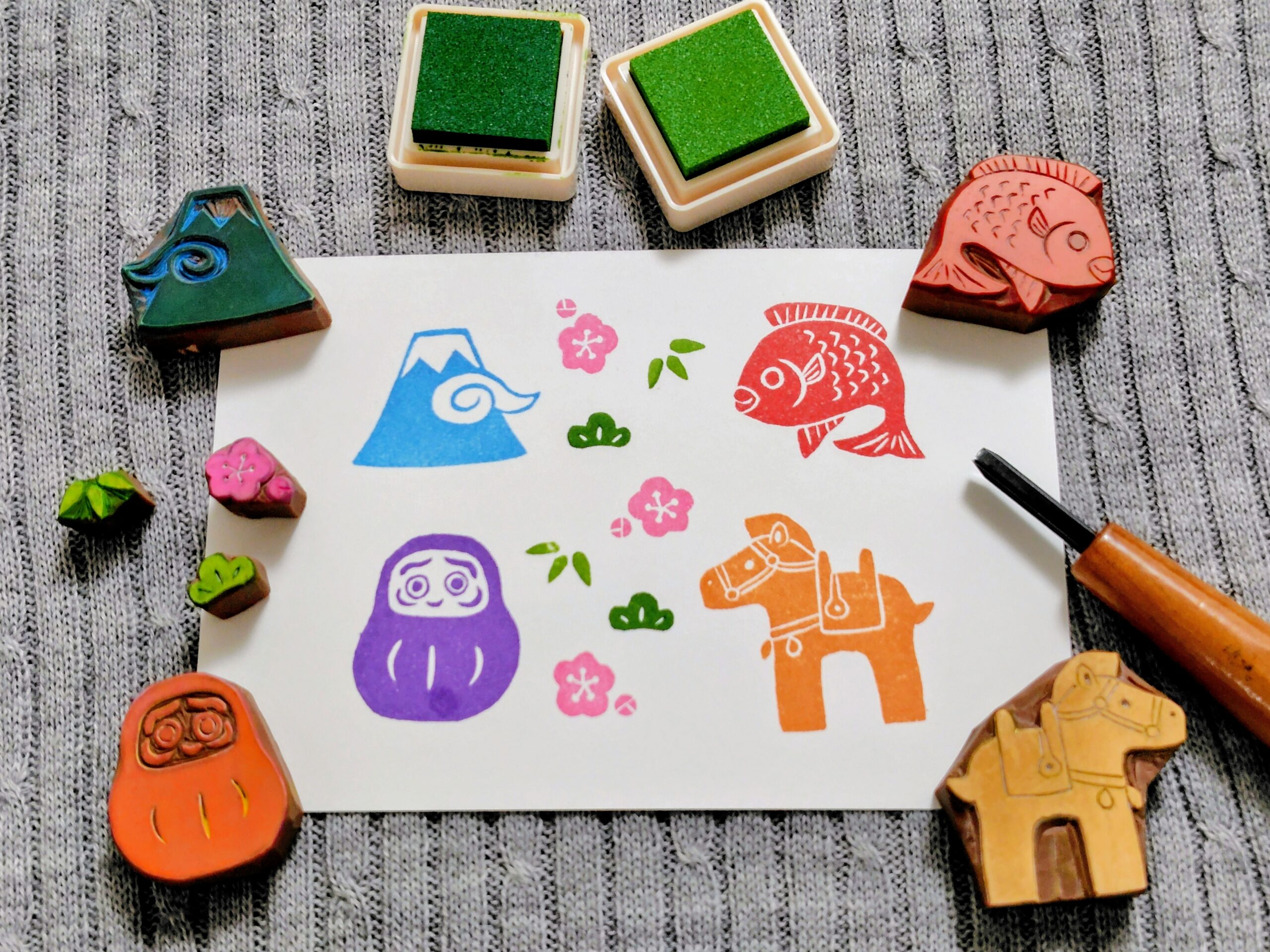いくつかの図案から選ぶ消しゴムはんこ作り(3歳から作れる簡単はんこもあります)