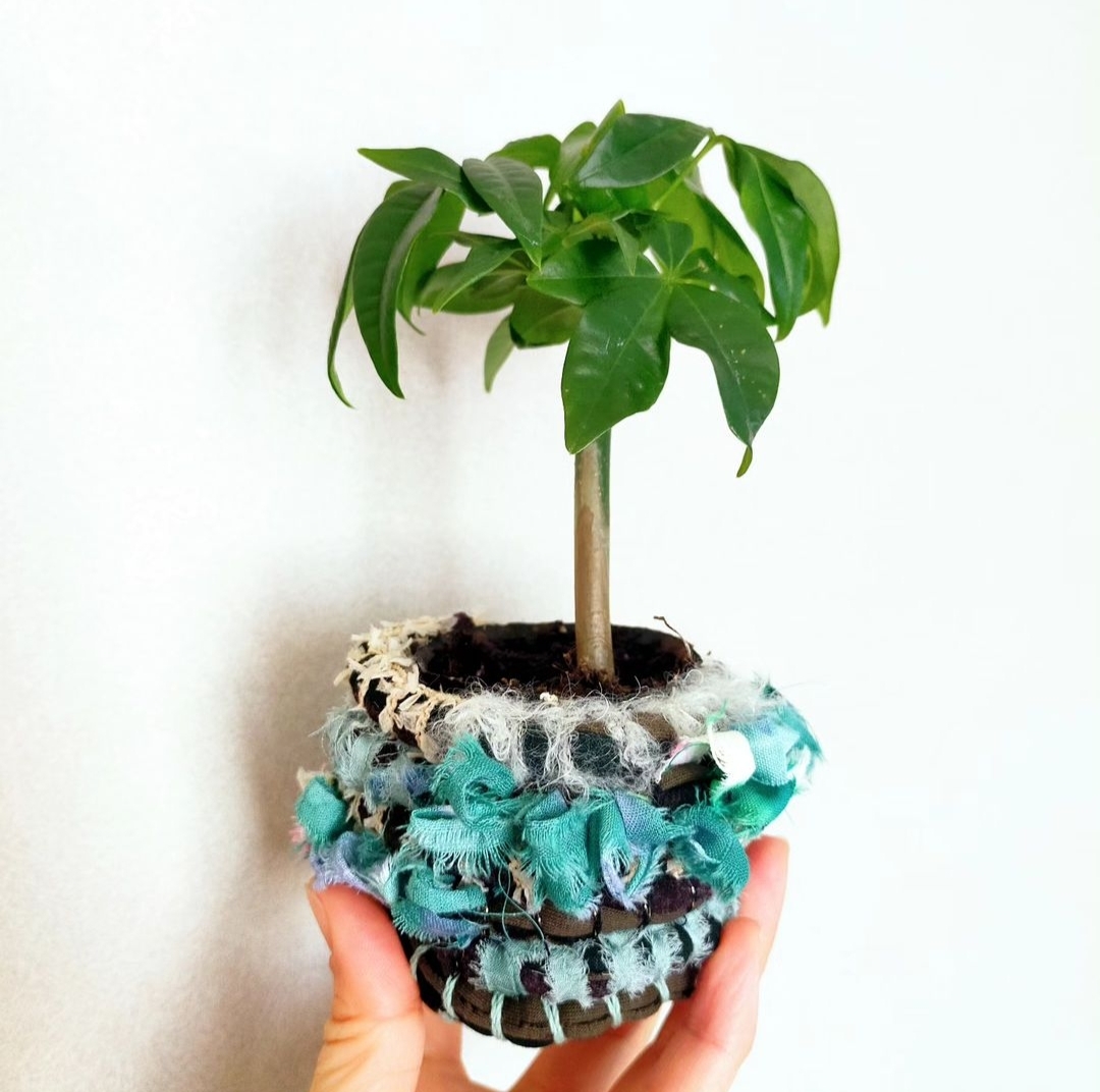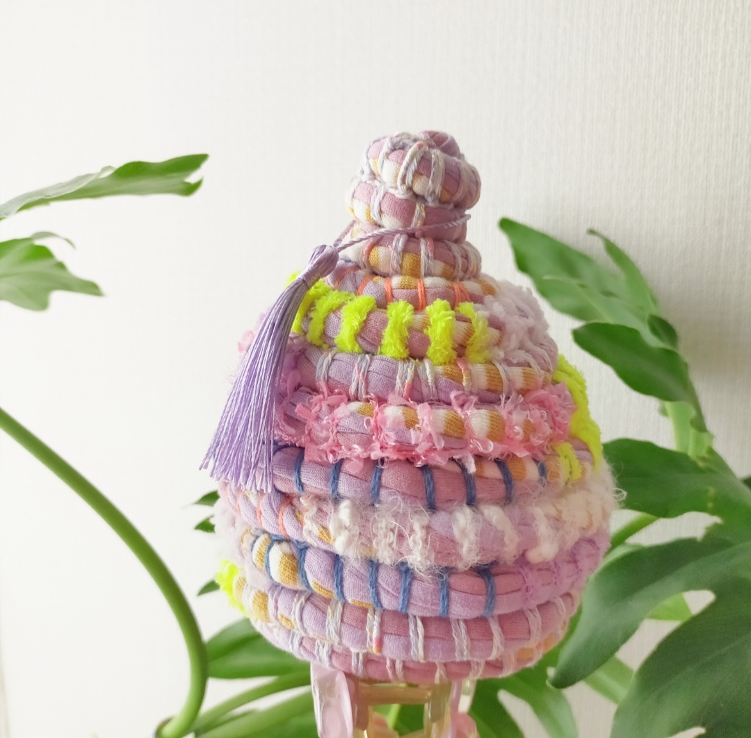 かぎ針を使い、カラフルな糸を組み合わせて編んで制作する、オリジナルの可愛いカゴ作り
