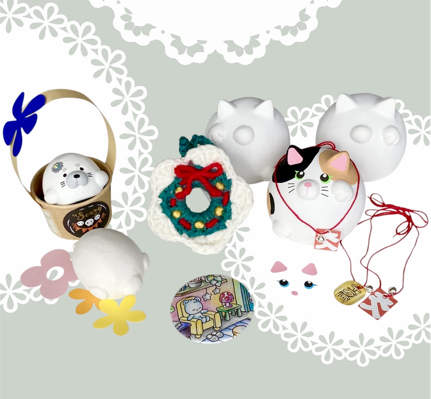 張り子で作った真っ白な招きネコに絵の具で模様を塗るワークショップ(招きネコ用のかわいい小判or大入袋付き)