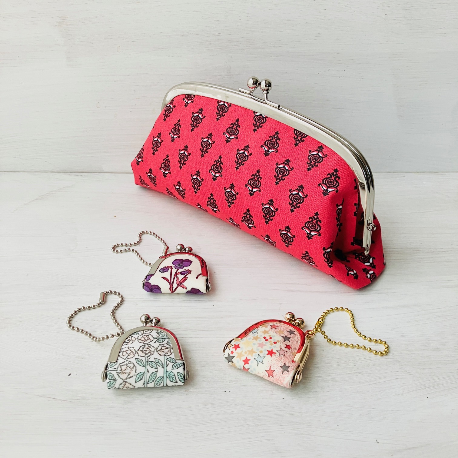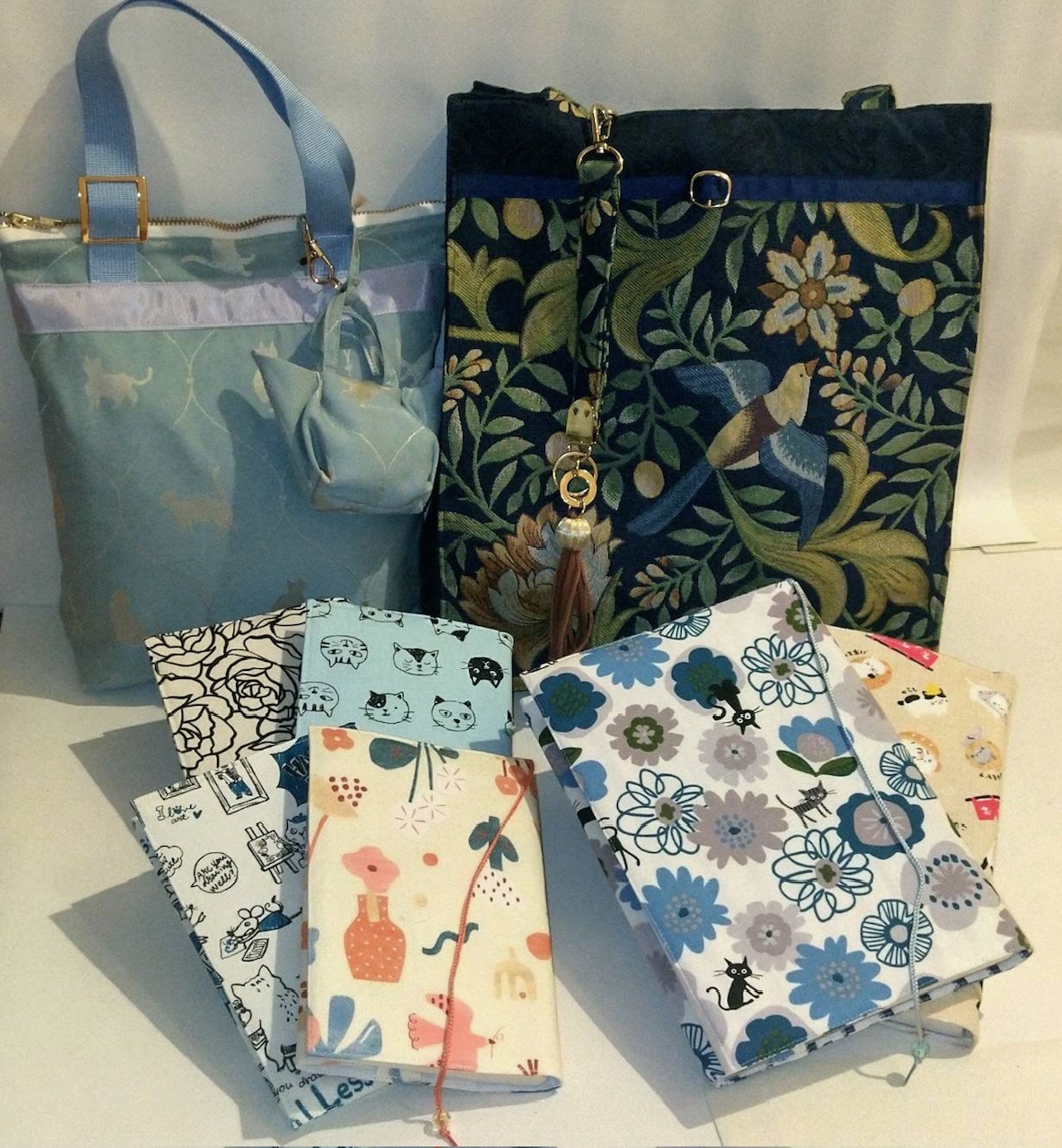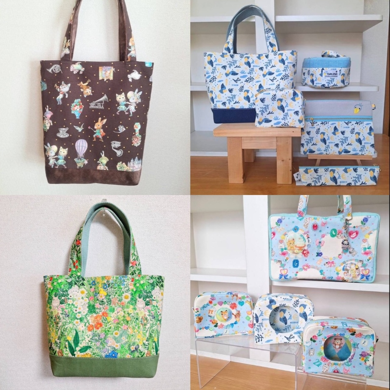 ハシビロコウや動物柄の布地を組み合わせたバッグやポーチ等