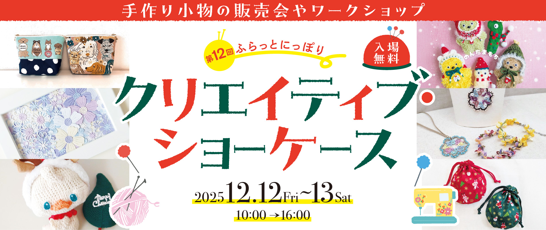 わくわく、ほっこりワールド全開!ぬいぐるみ、編み小物、ビーズ小物等(3人の作家による作品販売)