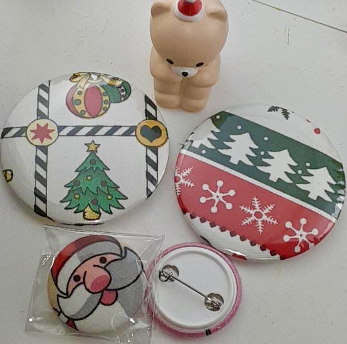 お好みのクリスマス生地を選んで、缶バッジ、オリジナルミラー作り
