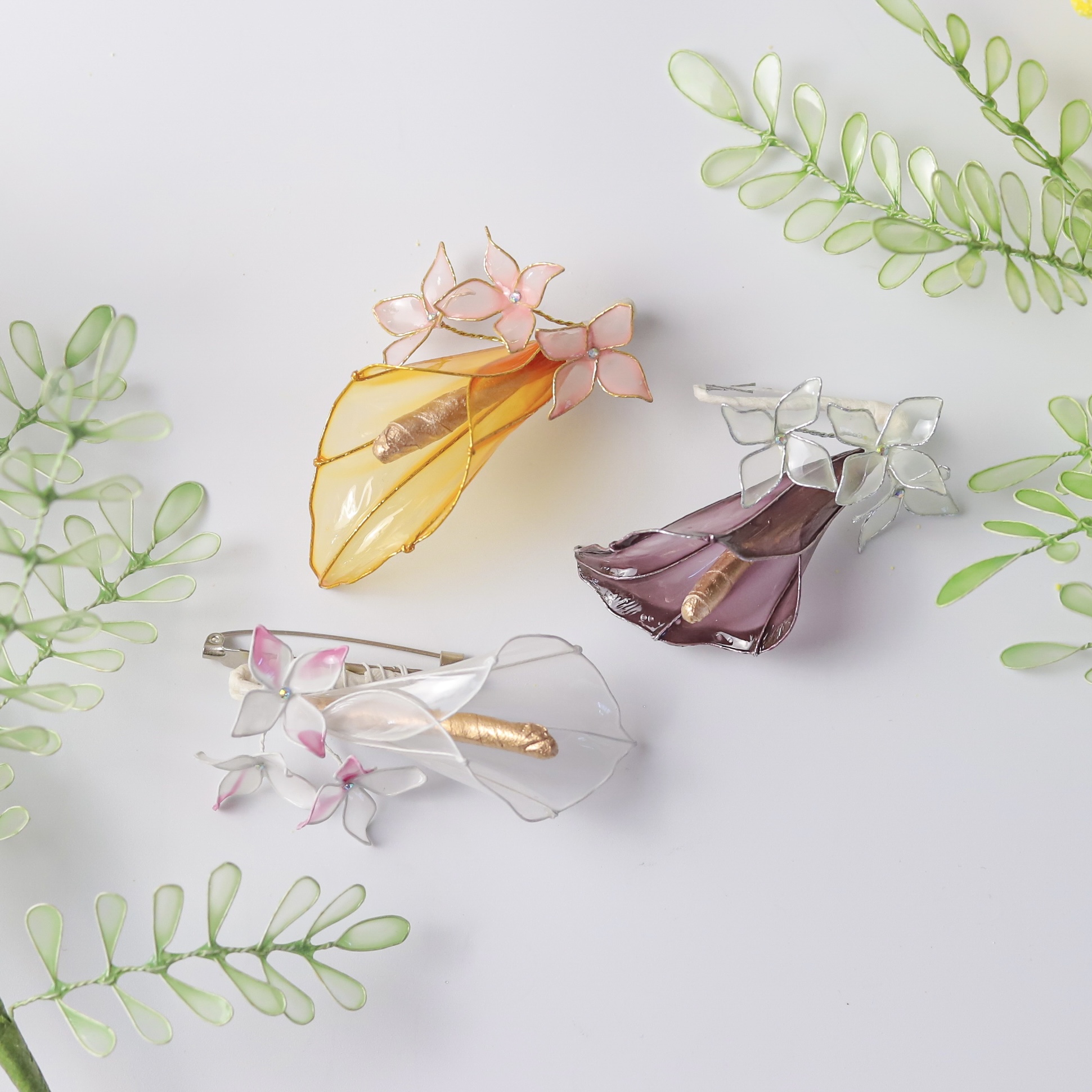 カラーと紫陽花のコサージュ(ブローチ)をディップアートで 卒園・入学式に身につけたい、透明感あるカラーと紫陽花のコサージュやブローチ作り。