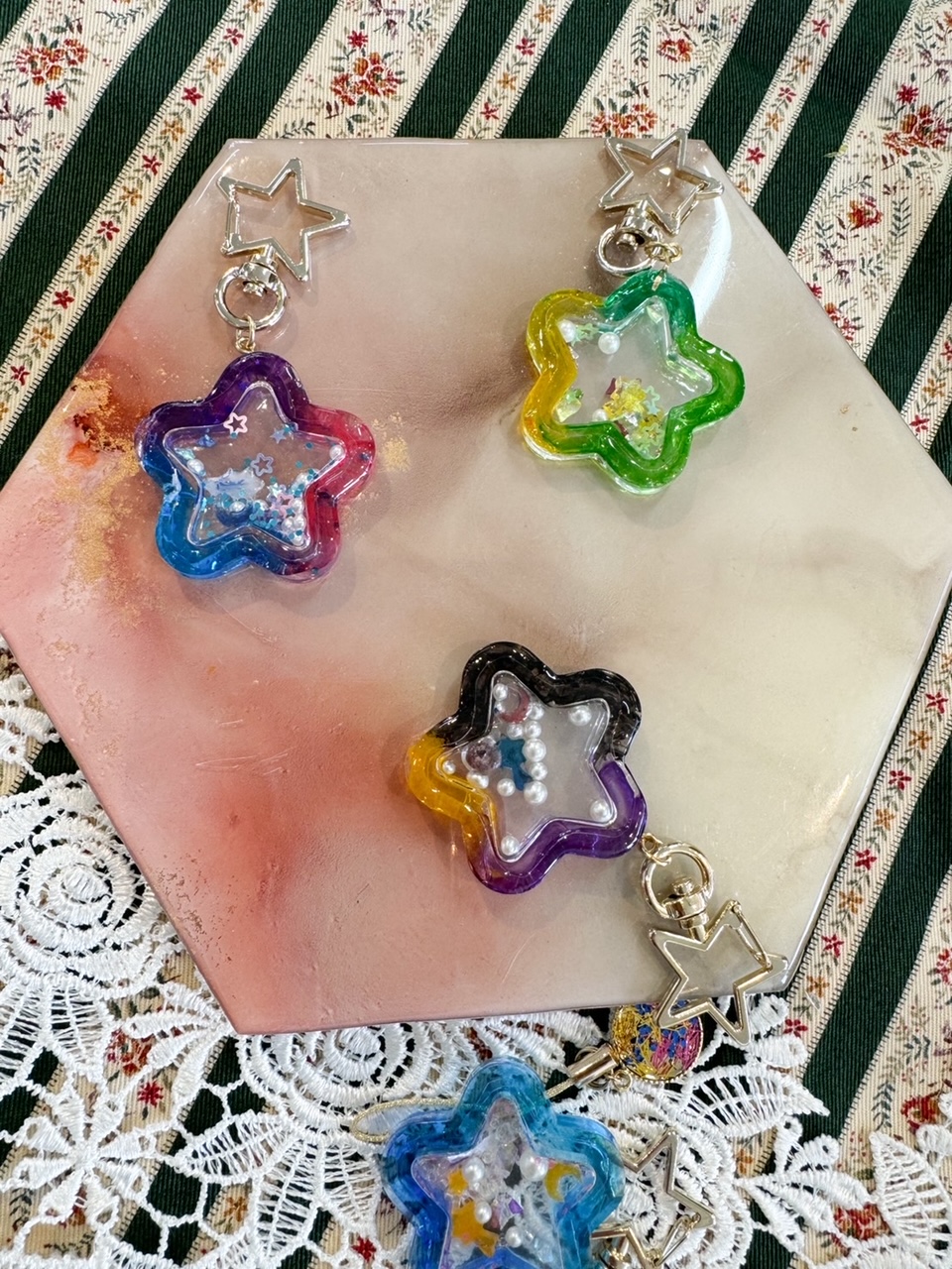 レジンを使って星形のキーホルダーを作ります。外枠の星から作っていきます。好きな色を自分で選んで作成できます。