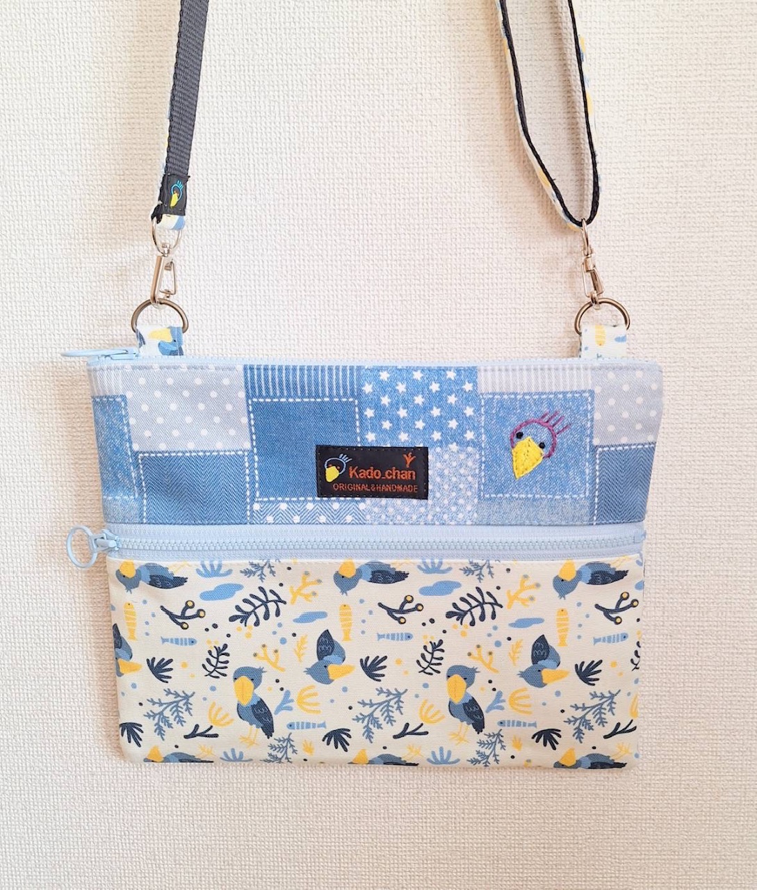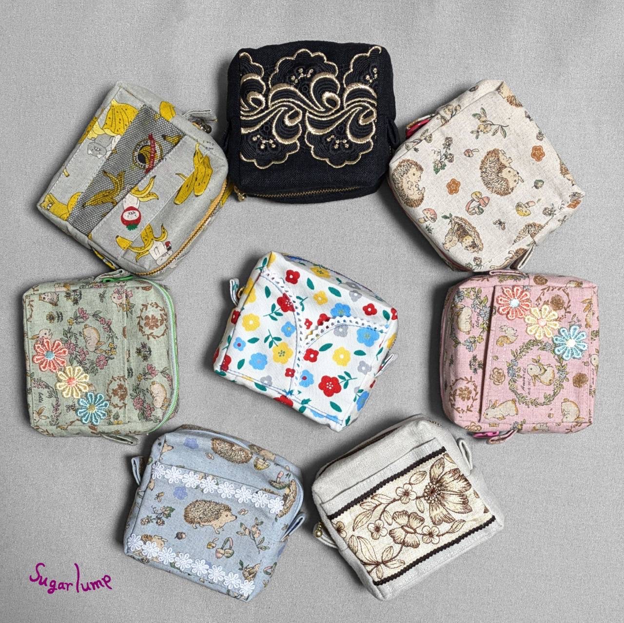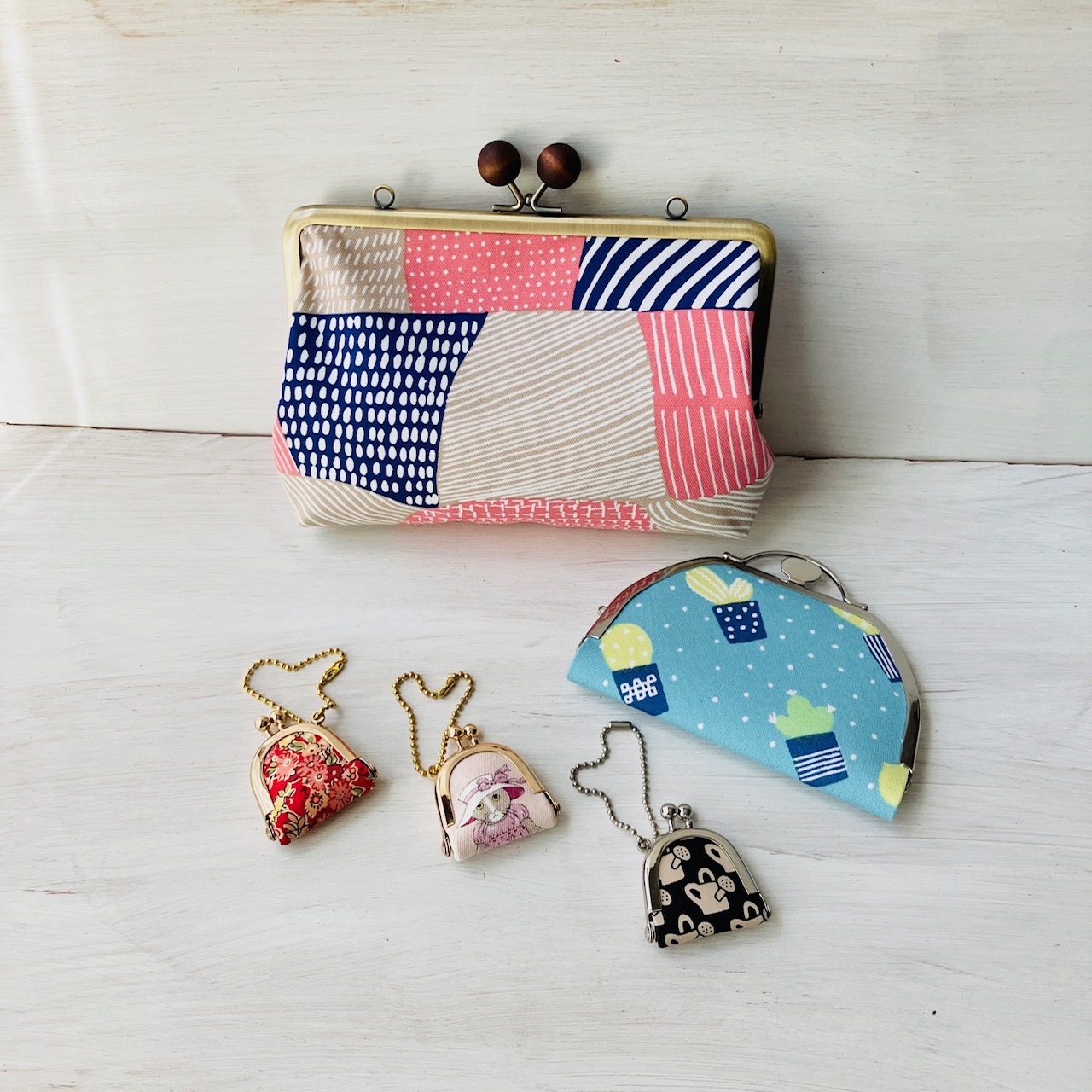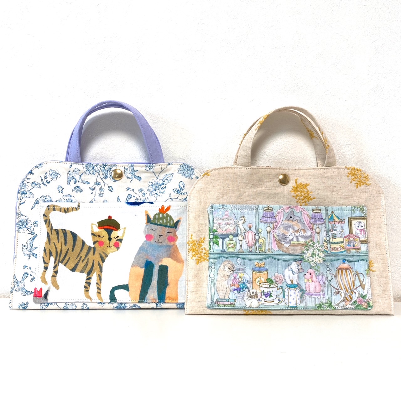 ハシビロコウや動物柄の布地を組み合わせてバッグやポーチなどを作っています