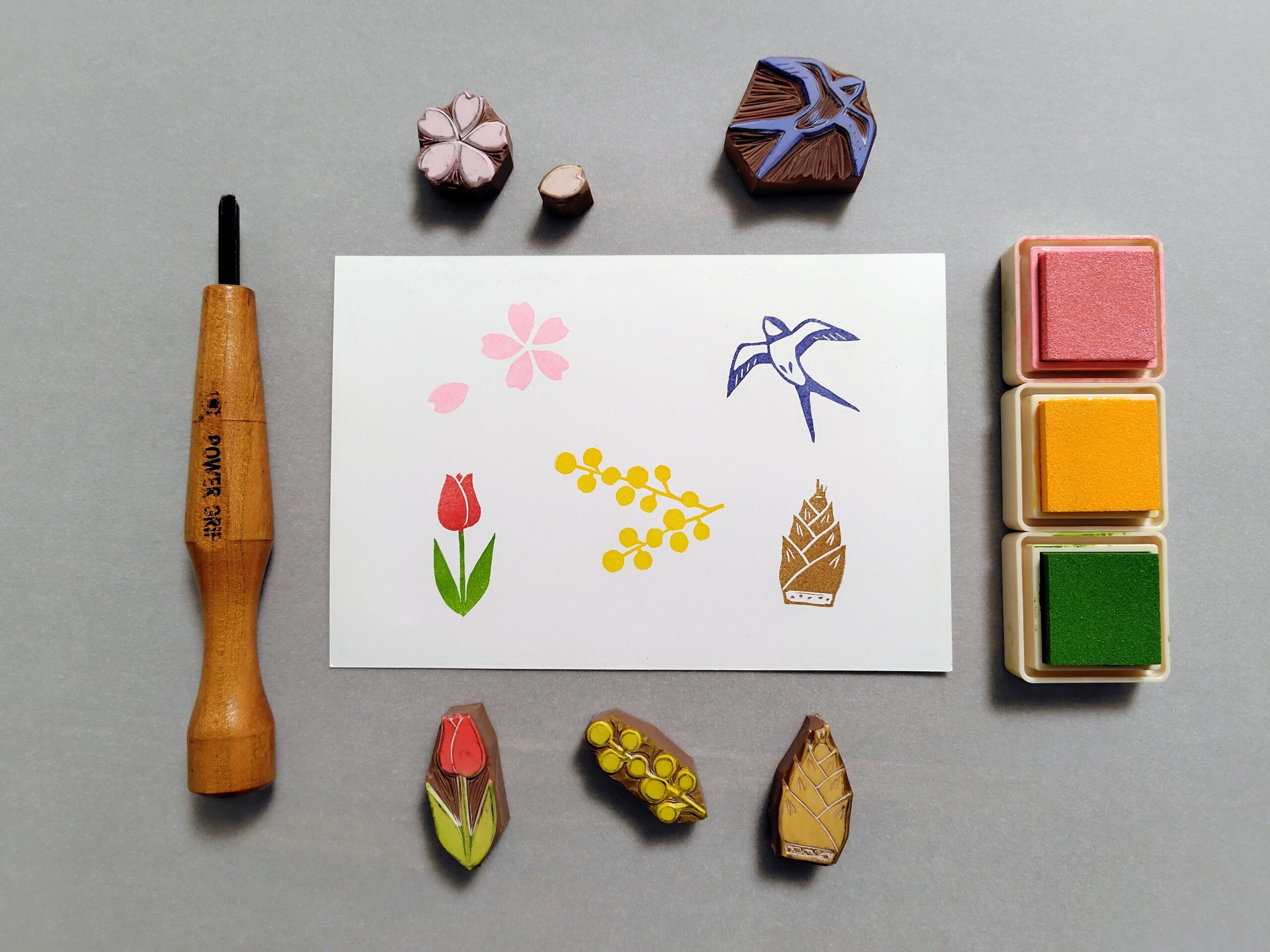 春のモチーフや、入園入学に使えるお名前はんこが作れます。