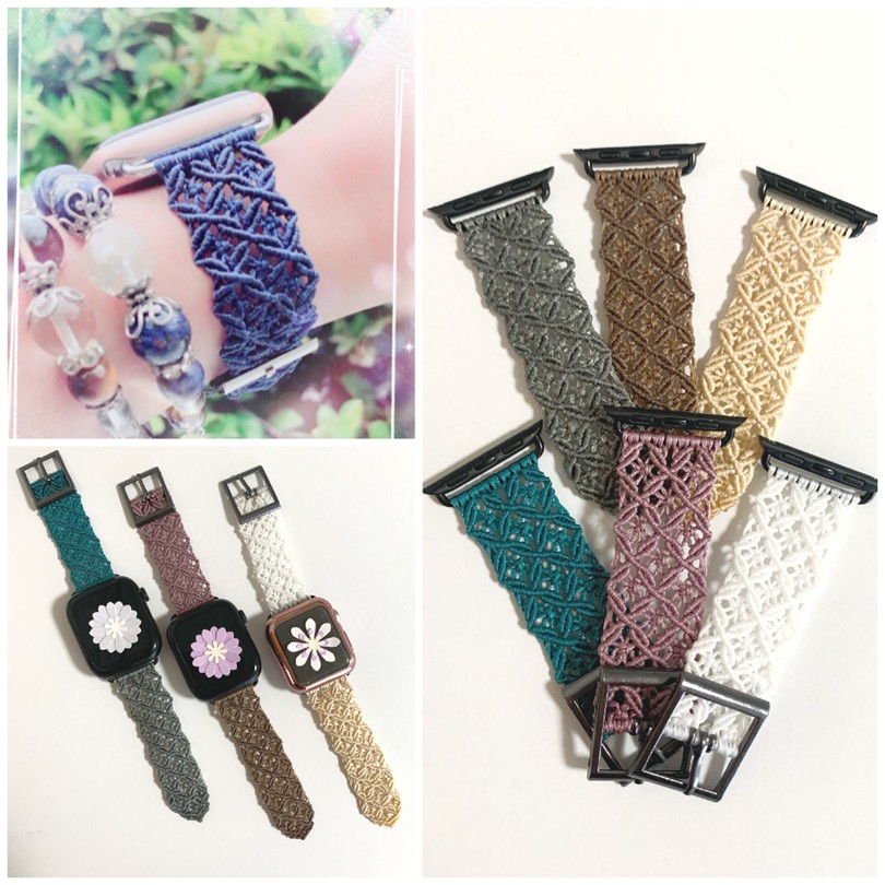 アップルウォッチ、スマートウォッチ、腕時計の手編みで作るお肌に優しい着せ替えバンド