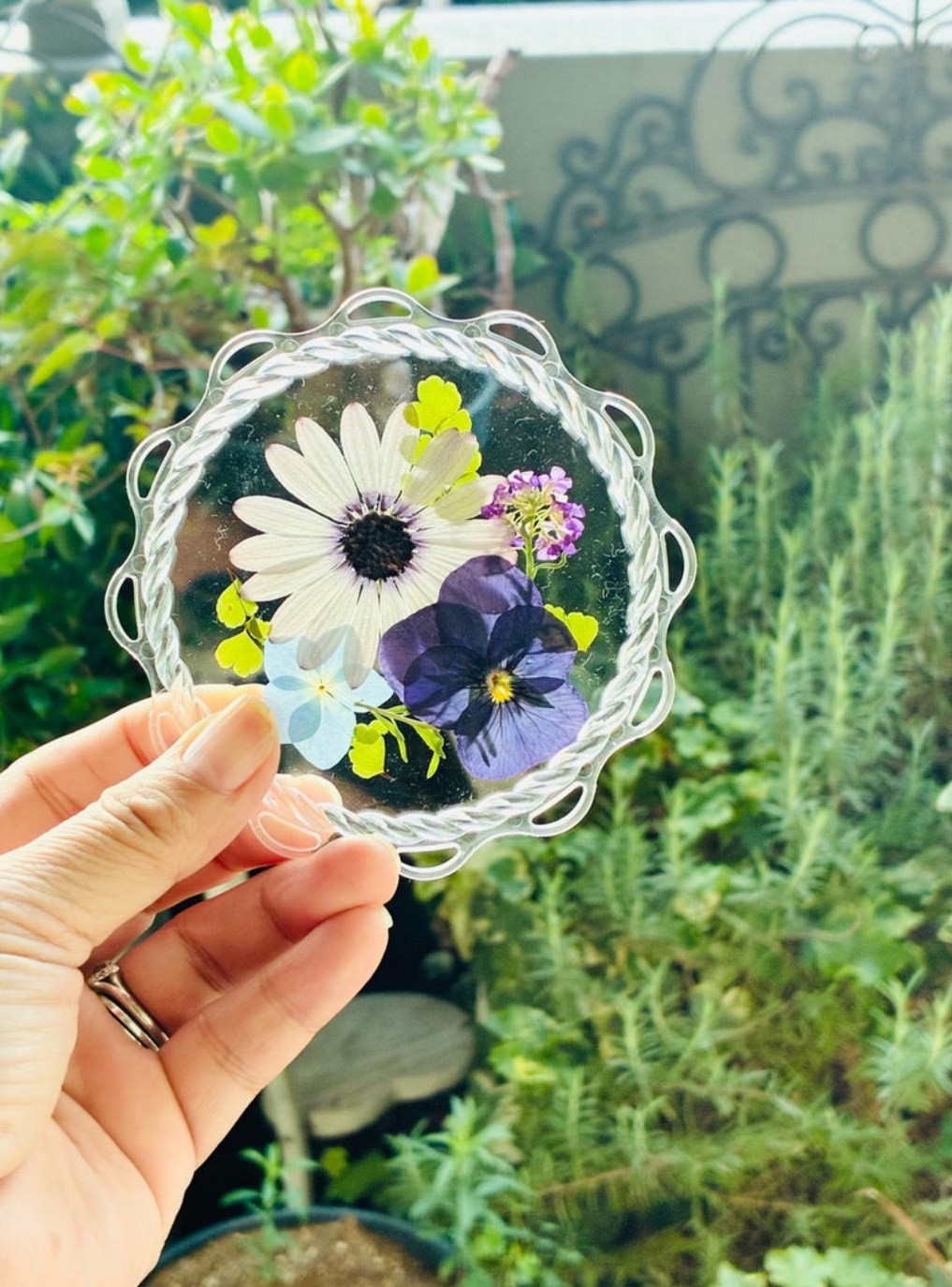 好きなお花のパックを選んでいただきミニサイズのクリアな押し花フレームを作ります。