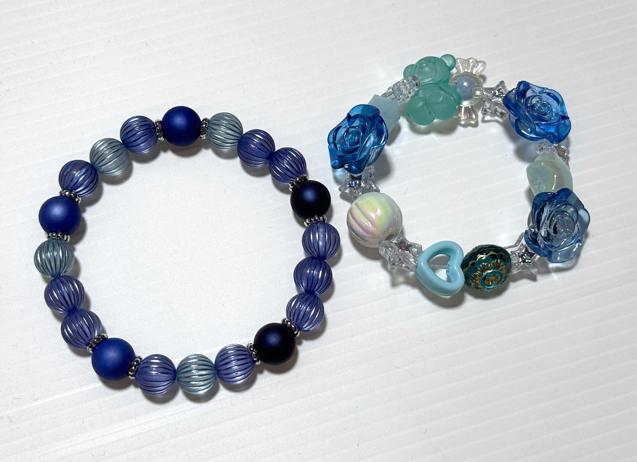 選んで作るオリジナルビーズブレスレットと、キラキラパーツを詰め込んだお菓子パッケージ風キーホルダー作り